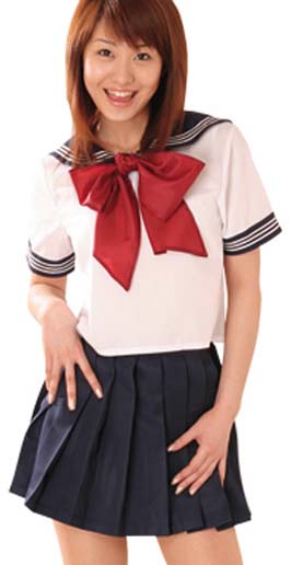 大きく開いた胸元と、ミニ丈プリーツスカートがいい感じです。