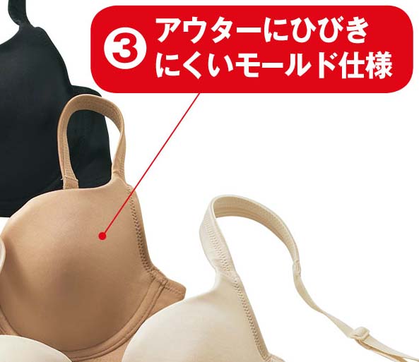 シンプルなデザインですが、アウターに響かないモールドカップで、いちばん活躍するブラです。