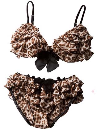 ラッフルレースたっぷりのブラ&ショーツセットのレオパード柄です。