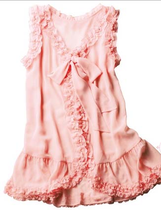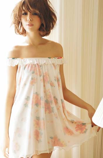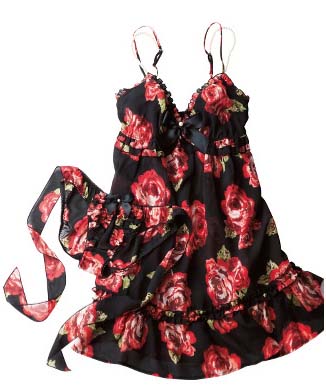 フラワープリント生地にチュールレースを重ねた繊細なベビードール。