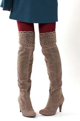 ガーターストッキングでもはいているかのような、繊細なカットーワークがとっても美しいニーハイブーツです。